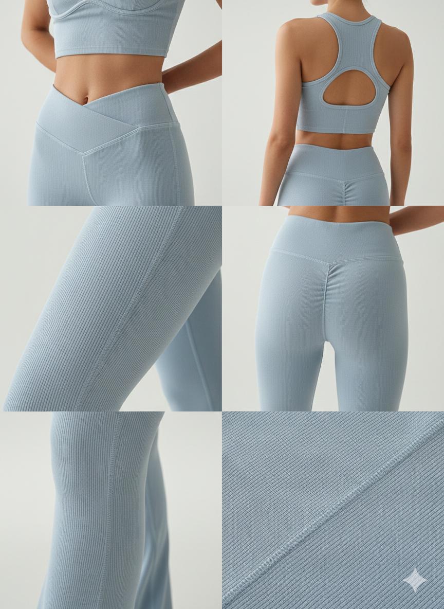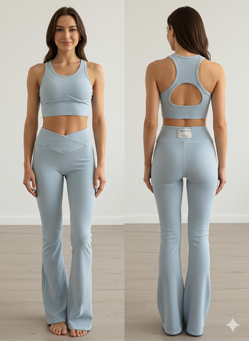 Az Amalfi kollekció letisztult babakék árnyalatban érhető el, hosszú nadrágos kialakítással, amely egyszerre nőies és időtálló. Ez a jógaszett azok számára készült, akik a mozgás során a kényelmet, az eleganciát és a funkcionalitást egyaránt fontosnak tartják. A jógaszett tökéletes választás jógához, pilateshez vagy akár egy könnyedebb edzéshez, amikor a szabad mozgás és a kellemes viselet elengedhetetlen.